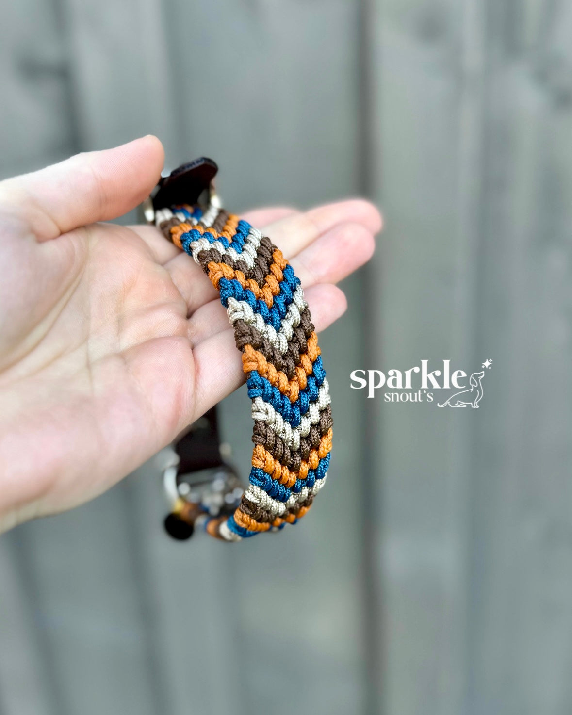 Da der Biothane Verschluss aus Resten entstanden ist und so etwas kürzer ist, gilt dieser als B-Ware. Das Halsband hat so einen Grund Rabatt von -10%.